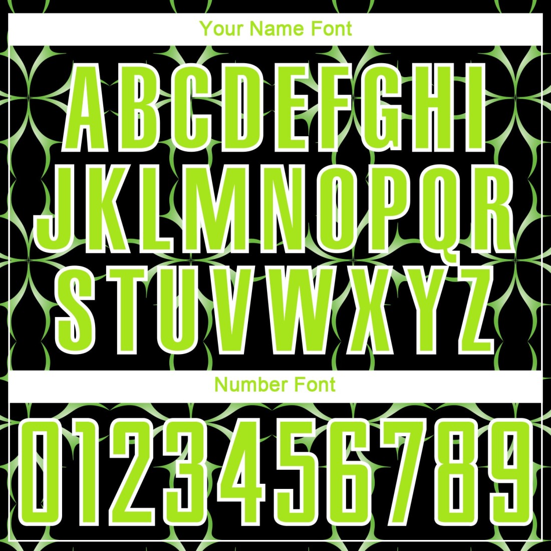 Custom Black Neon Green-White Damask Pattern Sublimation Soccer Uniform Jersey